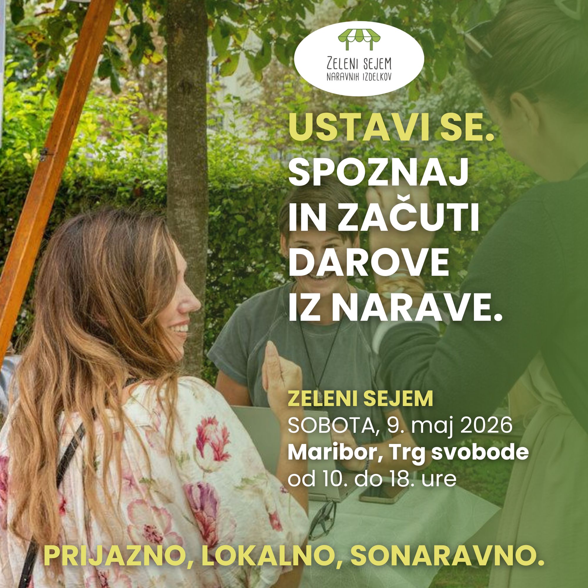 Potem nas obišči na stojnicah Zelenega sejma., ki potuje med večjimi slovenskimi mesti in ti prinaša ponudnike z naravnimi izdelki. Poleg super izdelkov so na stojnicah tudi predstavitve različnih zanimivih storitev za vaše zdravje in zadovoljno življenje. V maju 2026 vas vabimo na dva velika pomladna sejma, v Ljubljani in Mariboru.
