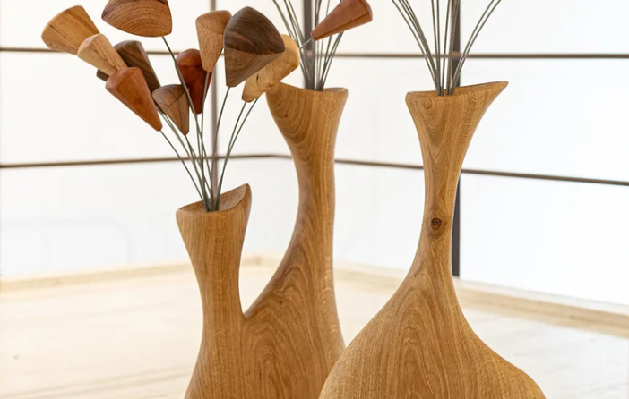 Poleg umetniških kosov Dejan ustvarja tudi ročno izdelane kuhinjske pripomočke, kot so rezalne deske, ter unikatni nakit in dodatke — med njimi pasove in manšetne gumbe za moške.