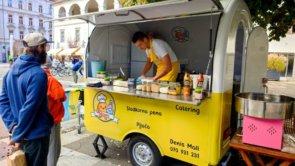 Smo podjetje NJAMI in pečemo sladko-hrustljave palačinke, ponujamo osvežilne pijače in ustvarjamo izjemne sladkorne penice.