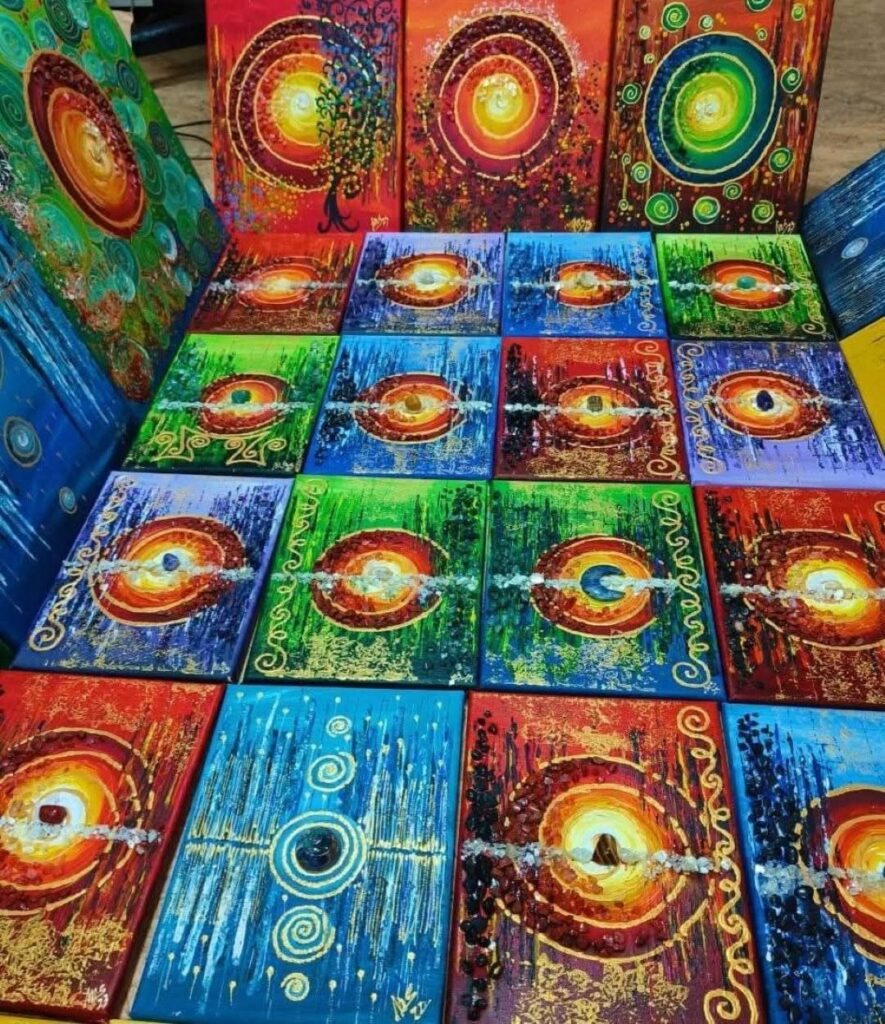 V mojem čarobnem kotičku me navdihujejo kristali, poldragi kamni, energije, izdelujem barvite orgonite, energijski nakit, ročno poslikavam keramiko, steklo, tekstil, slikarska platna – energijske slike, stene otroških sob, izvajam delavnice in animacije za otroke, poslikave obrazov in izdelujem personalizirane izdelke po naročilu.