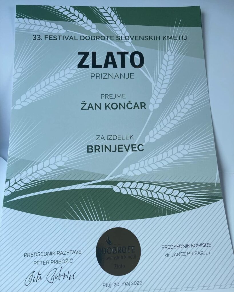 Brinjevec je žganje iz izbranih, dve leti dozorelih brinovih jagod. Pred fermentacijo jih grobo zdrobimo, da ohranimo značilno aromo. Po nadzorovani fermentaciji sledi natančna destilacija, pri kateri ujamemo srednji tok. Tako dobimo aromatičen brinjevec z rahlo grenkim, smolnatim okusom.